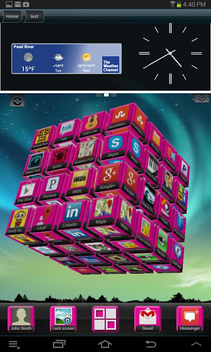 The QM Launcher 1.3 eliminates the 2D panning and scrolling that is typical of panel-based launchers and home screens on the market today, and optimizes the use of your precious screen space. With the QM Launcher 1.3 you can organize an unlimited number of apps in an easy-to-use 3D cube. We call it the “Matrix”.